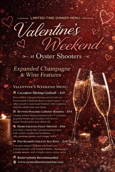 Celebrate Valentine’s Weekend with an elevated, limited-time dinner menu designed for a memorable night out. Available Friday and Saturday from 5pm to Close.